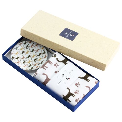 L2211-028 (預訂) 日本製 貓咪 小碟毛巾禮盒 (貓咪肉球圖案)