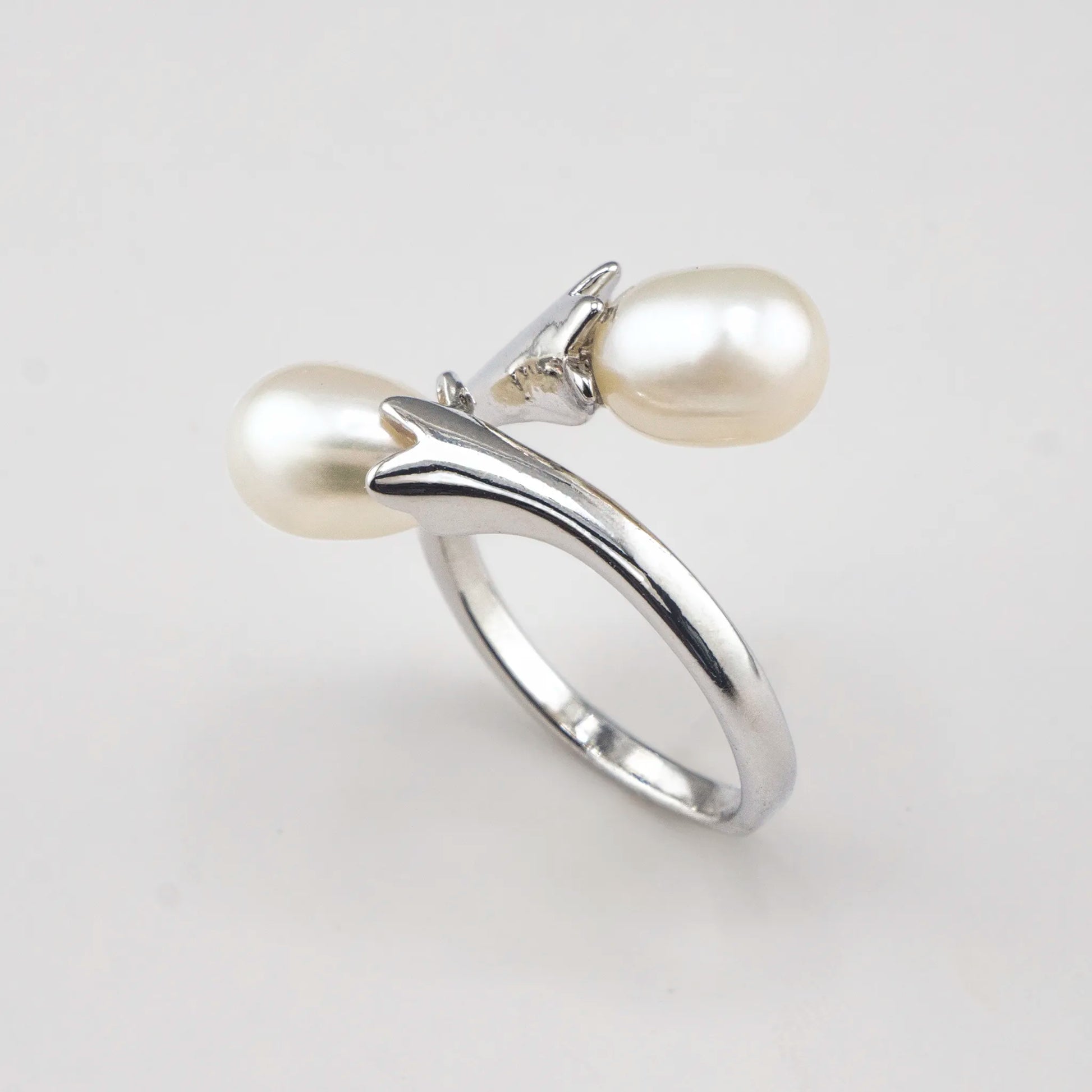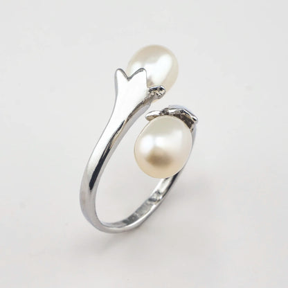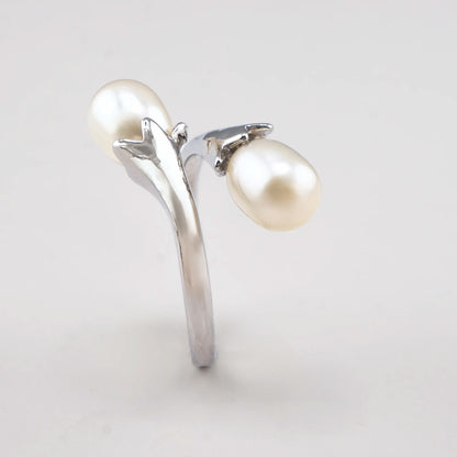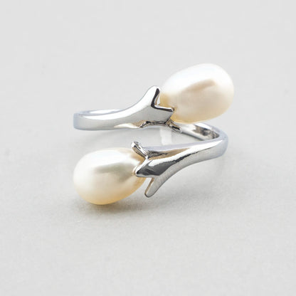 AKOYA Pearl ring with double tulip design (7mm)