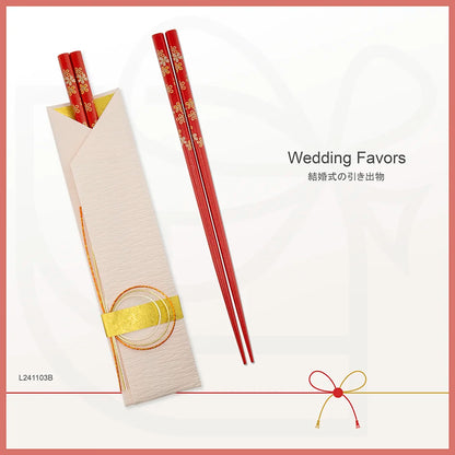 - Each set comes with a pair of chopsticks, a sleeve, a sticker with the couple's names and wedding date, and is neatly packaged in a clear bag.