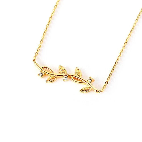 L2211-042 日本製樹葉花紋水鑽頸錬