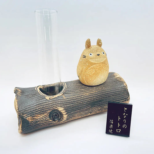 L231003 (預訂) 日本製 信樂燒「龍貓」小花瓶擺設 ; TOTORO Ceramic log with a vase - Shigaraki-yaki