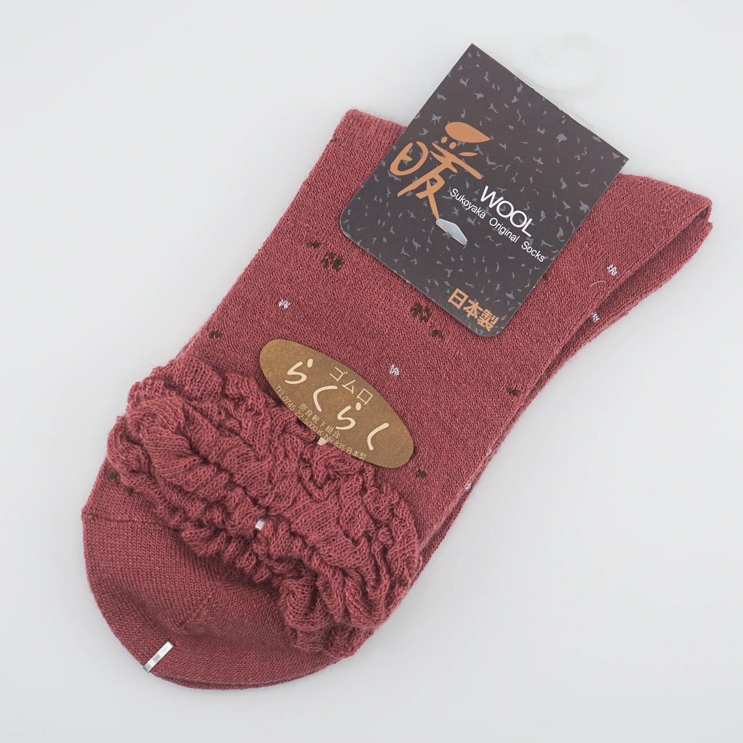 L2210-35 日本製 混羊毛織花花襪 (酒紅色)
