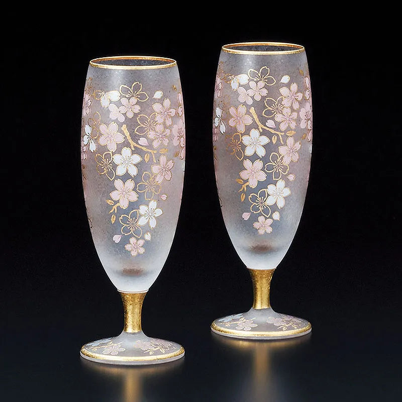 These glasses embody the style of traditional craftsmanship, with their dazzling gold accents and delicate cherry blossom designs. Show off your sense of sophistication with an aesthetic that sets the perfect scene.