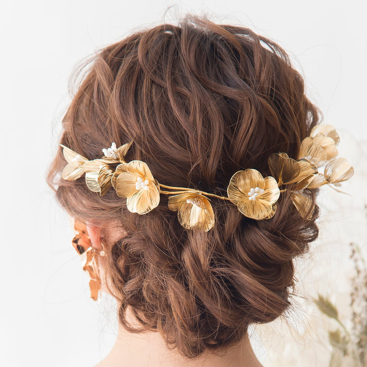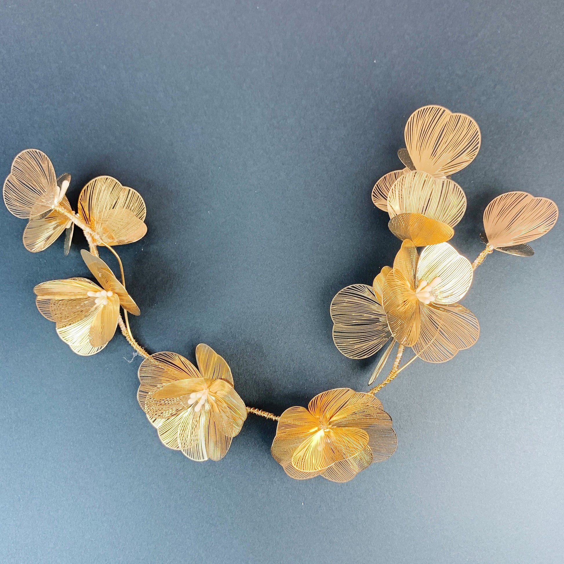L230822 (預訂) 波希米亞金線立體花卉髮飾 ; Bohemaina 3D gold wire flower hair piece