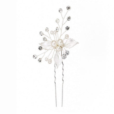 This exquisite set of hairpins are thoughtfully designed and carefully crafted measuring H 10.5cm. Perfect for any hair style, the silver pearl leaf hairpins are beautiful and delicate for the special day.