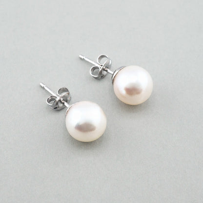 日本 AKOYA 米白珍珠純銀耳環 (8mm)
