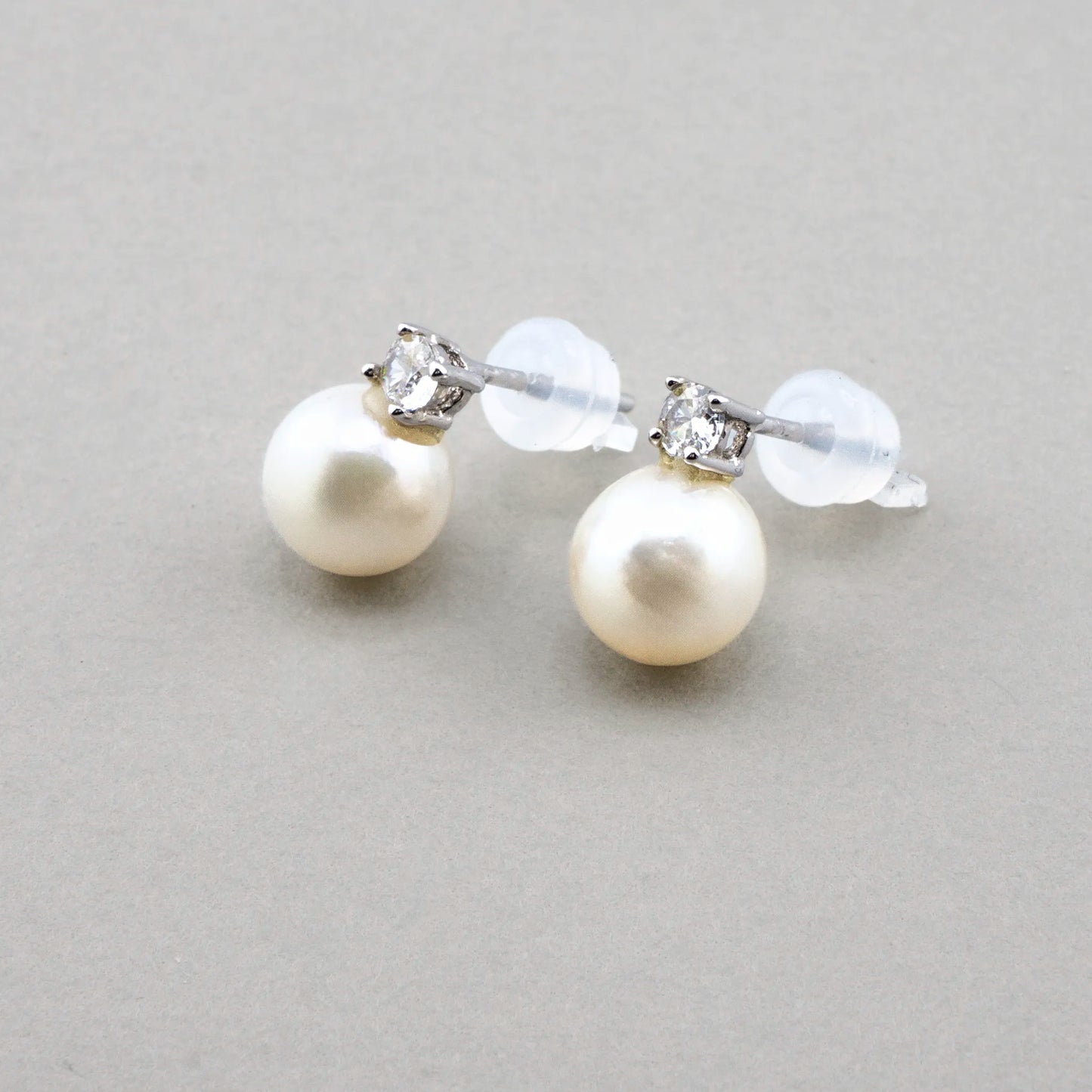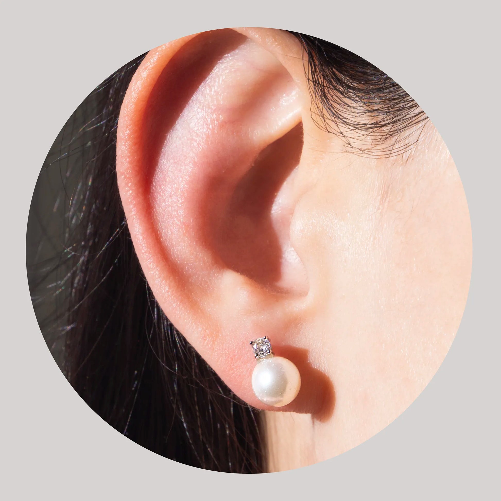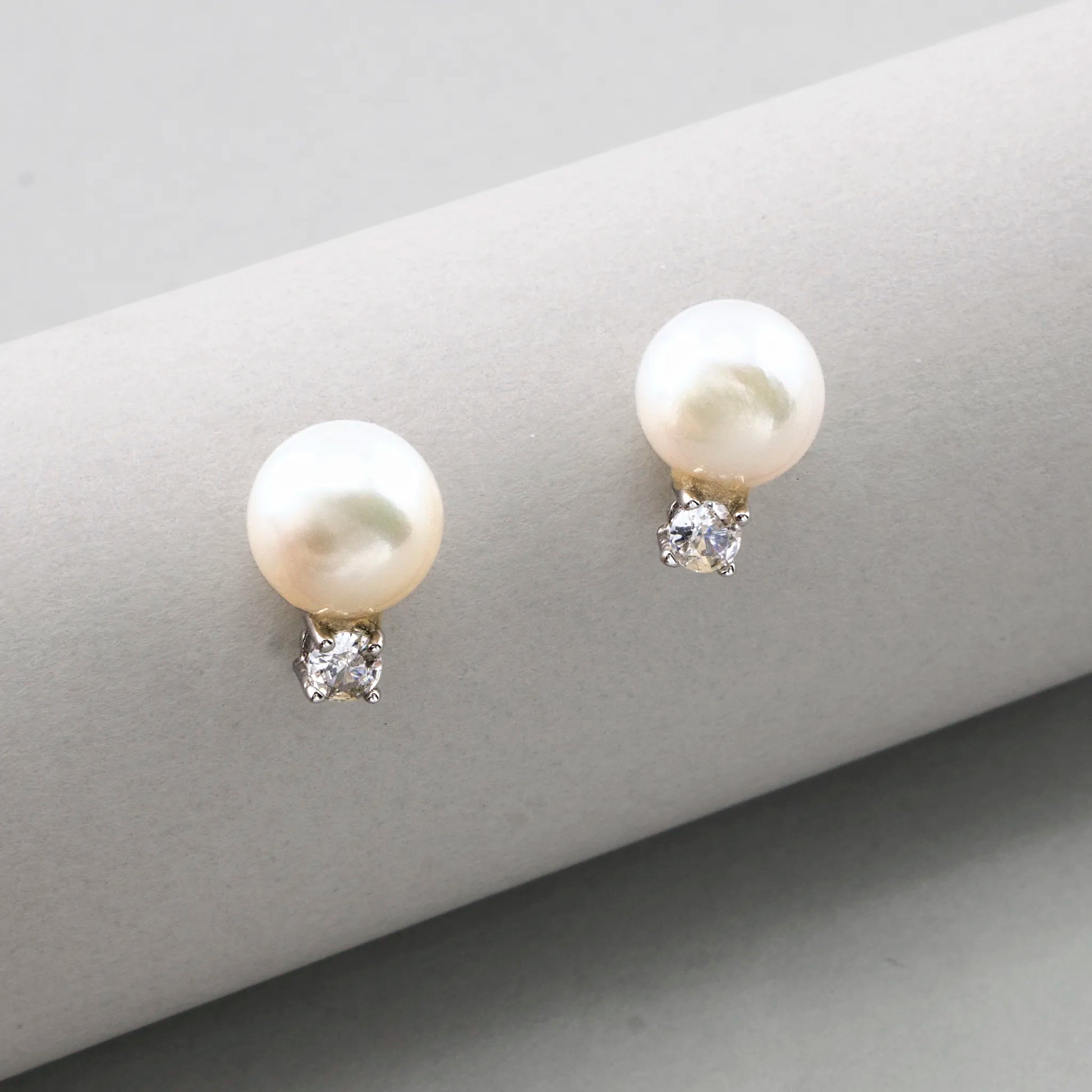 AKOYA pearl earrings with crystal (7.5-8mm)Crafted of the highest quality Japanese AKOYA pearls, these 7.5-8mm earrings make a classic, timeless statement that appears especially luminous when exposed to light. Perfect for pairing with any outfit.