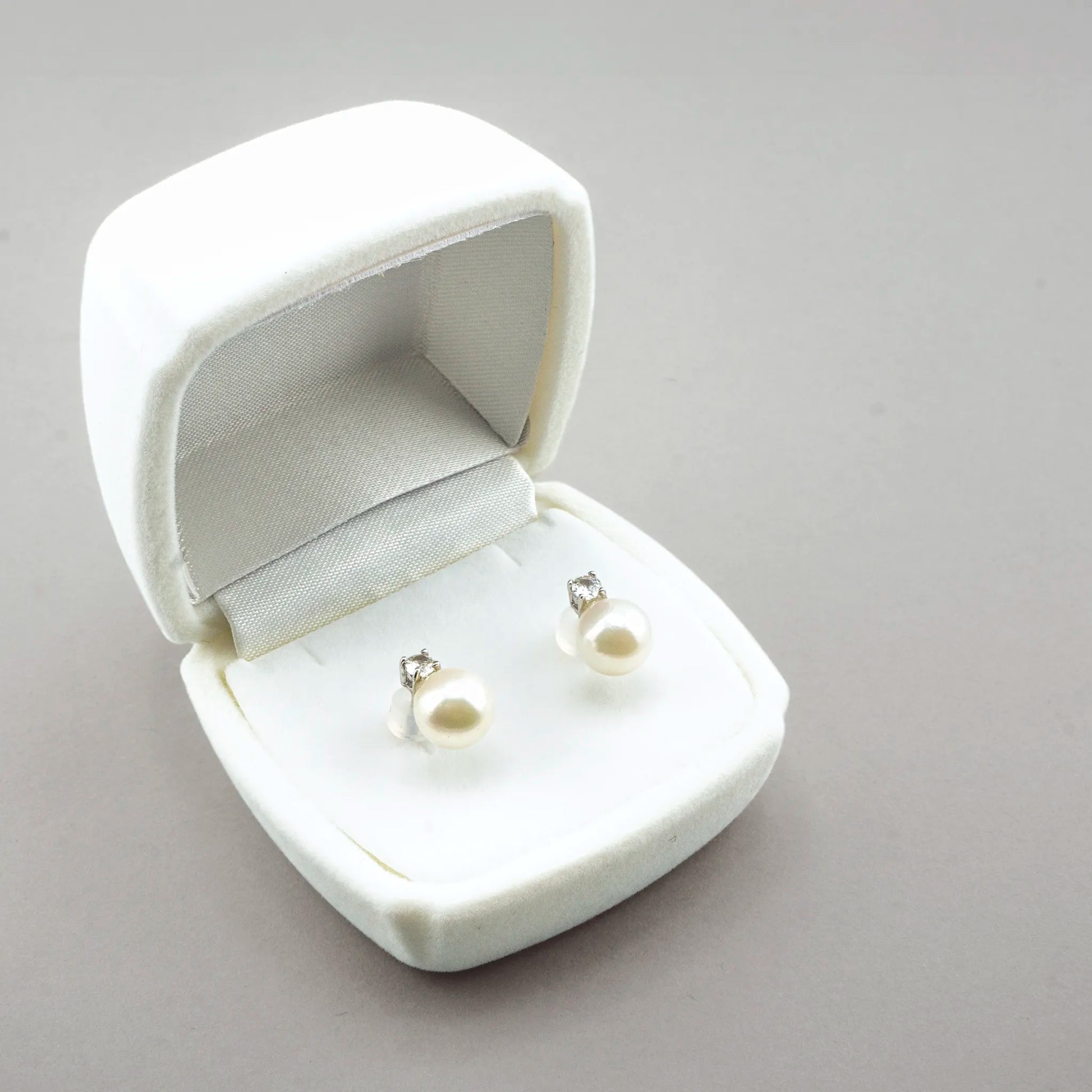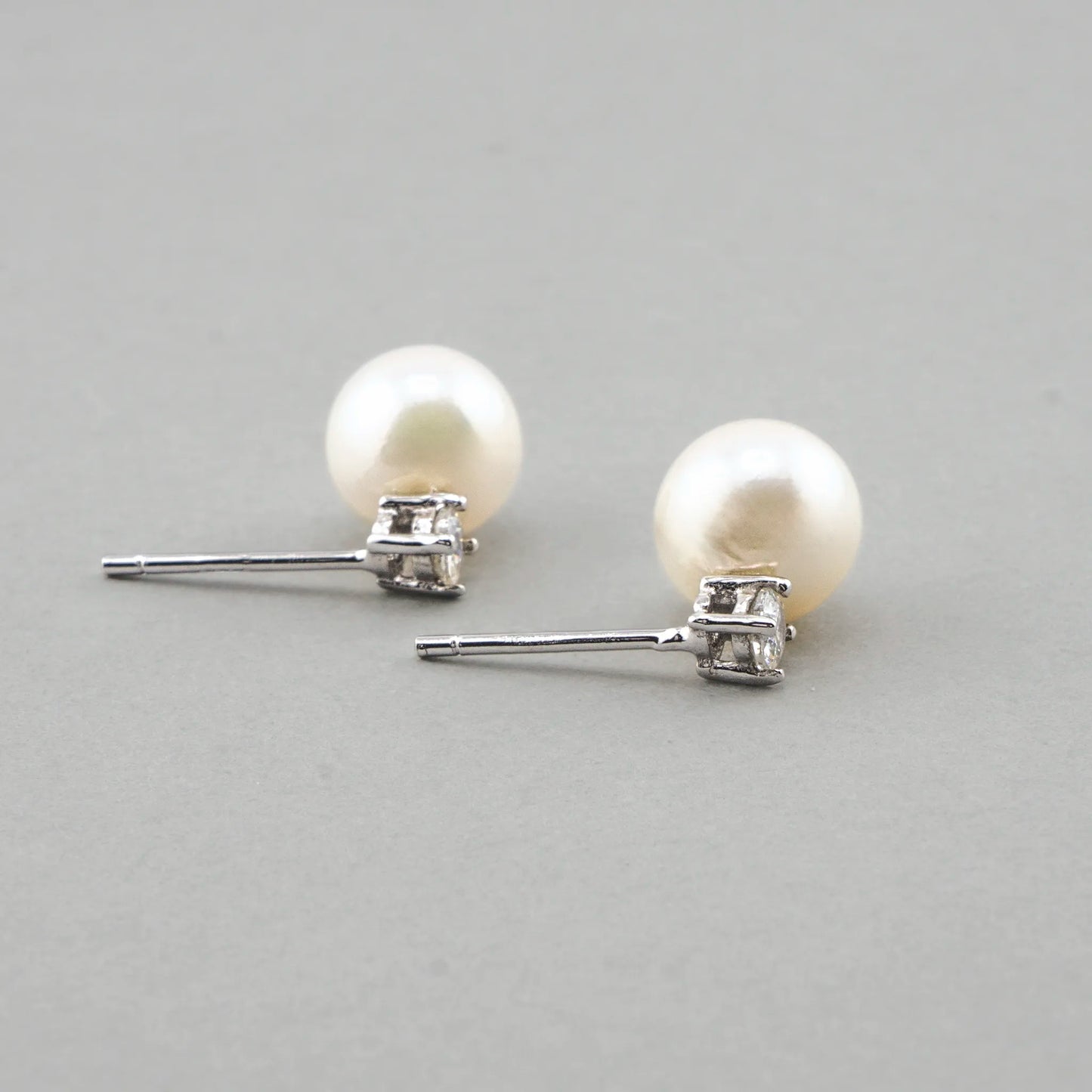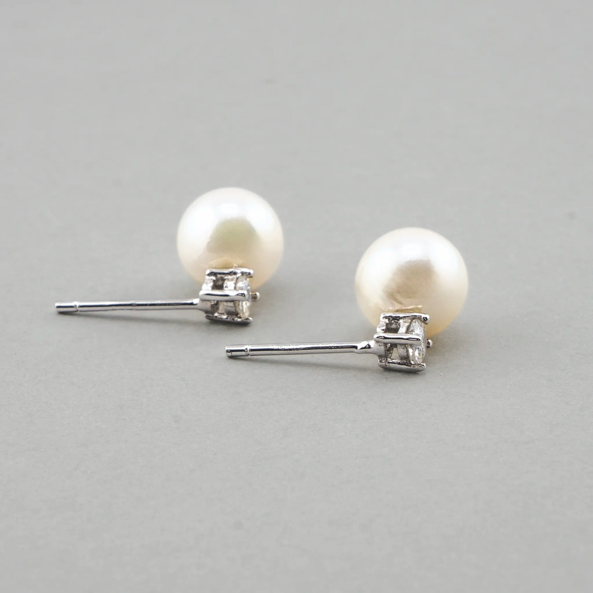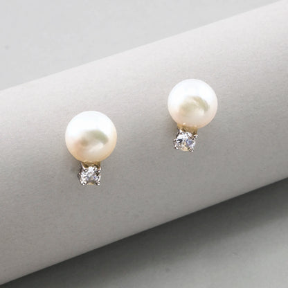 AKOYA pearl earrings with crystal (7.5-8mm)Crafted of the highest quality Japanese AKOYA pearls, these 7.5-8mm earrings make a classic, timeless statement that appears especially luminous when exposed to light. Perfect for pairing with any outfit.