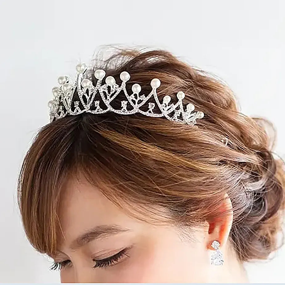 L240310 (預訂) 水鑽珍珠皇冠 ; Japanese regal style tiara with crystal & pearl