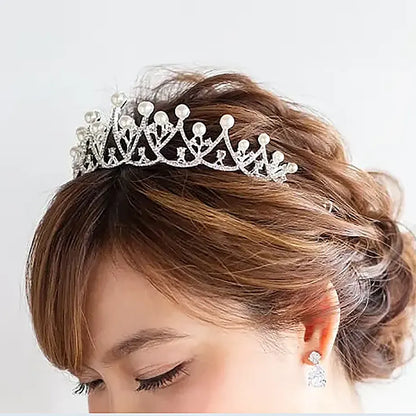 Elevate your wedding or special occasion look with a touch of royal elegance. Inspired by Japanese design, the crystal and pearl accents on this tiara add a regal touch that will surely make heads turn. Perfect for grand hotel weddings or church ceremonies, bring a bold and daring flair to your march-in with this exquisite tiara.