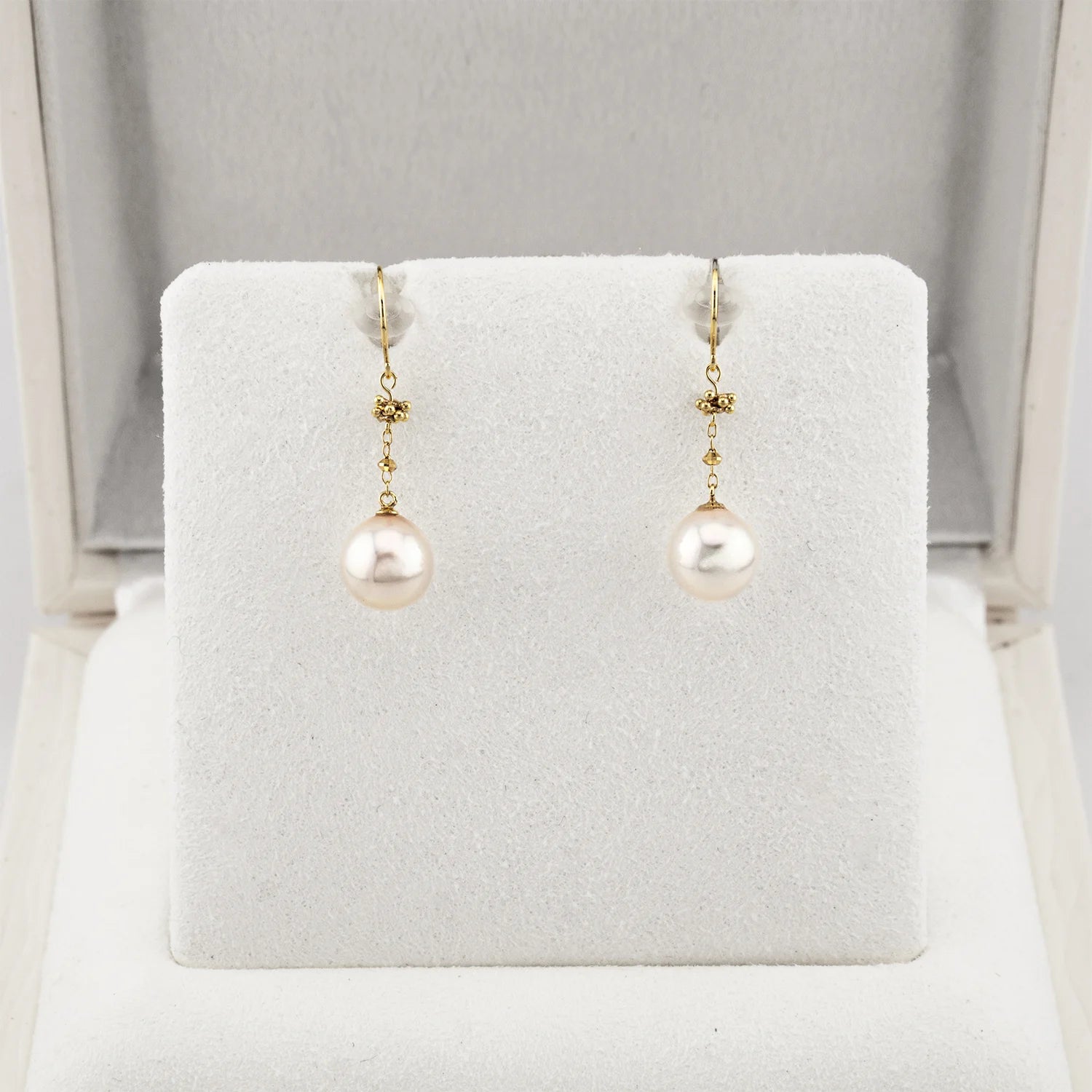 - 天然AKOYA米白珍珠及18K金垂吊 ,小巧掛耳款式嬌美動人。