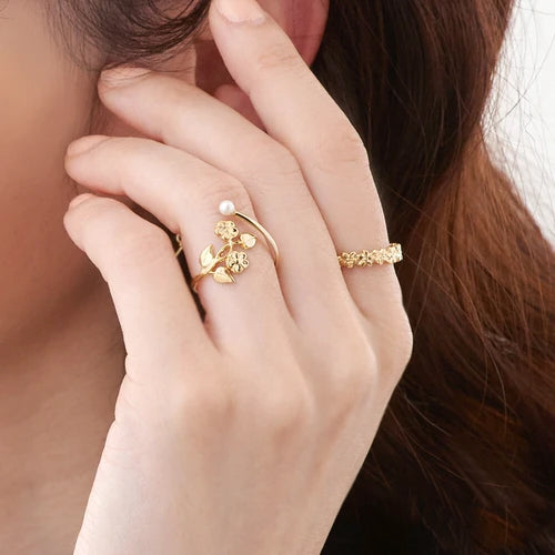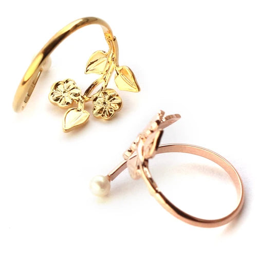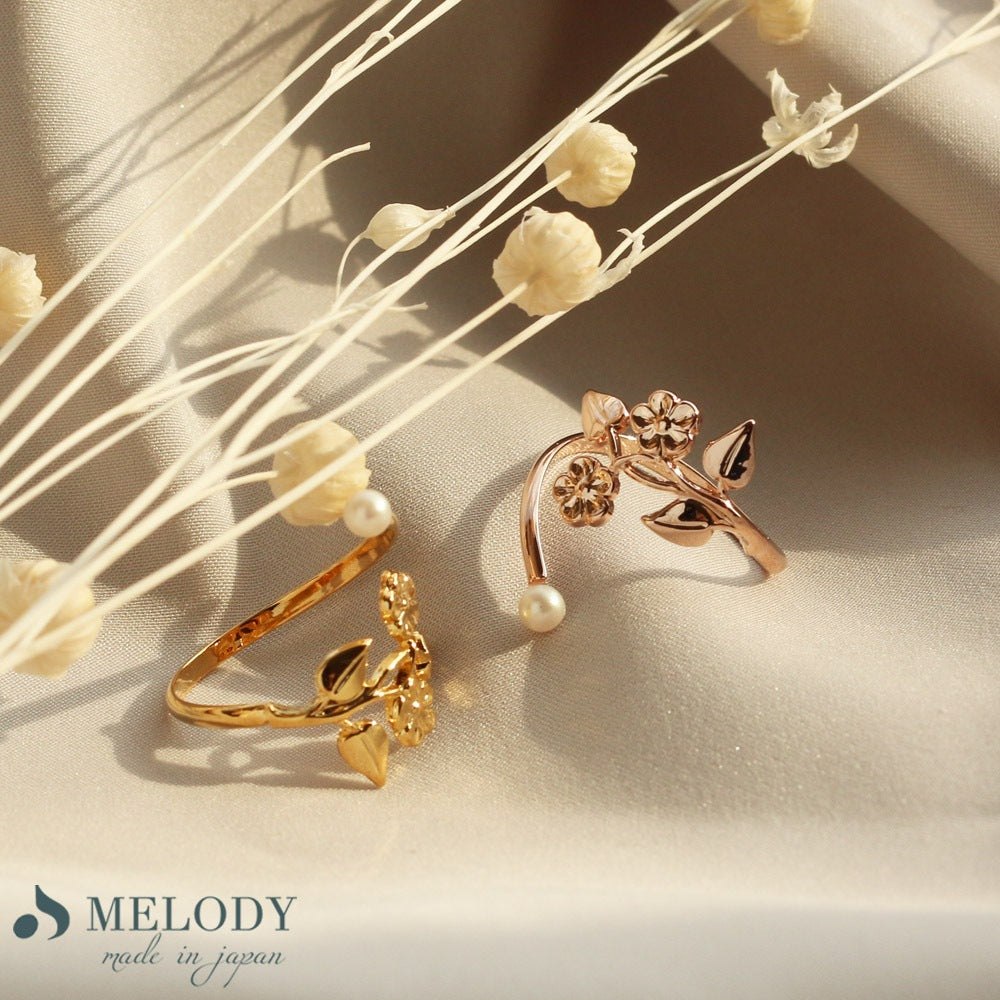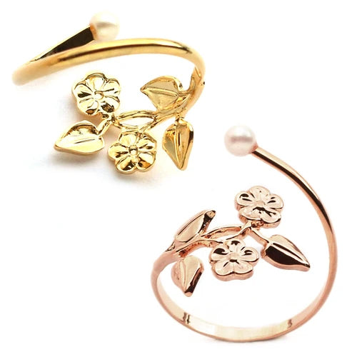 L2211-041 日本製植物花飾拼仿珍珠戒指 (玫瑰金/金色) (FREE SIZE)